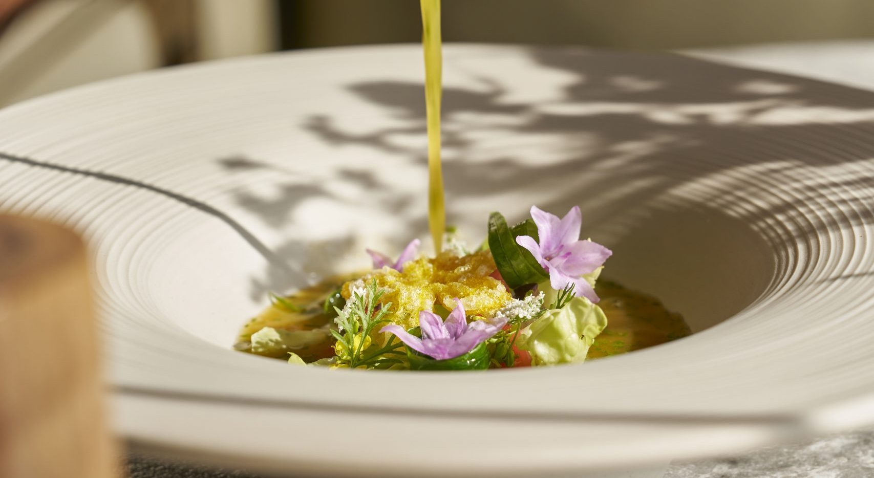An exclusive chef’s table experience in the heart of our PRU Jampa Farm, overlooking the peaceful lakes and wildlife, enjoying a 10-course sharing menu. With an open-air kitchen and a live fire, each dish is a reflection of nature’s bounty, exclusively starting off every experience with a tour of our organic farm discovering the seasons flora and fauna that is later served at your table.